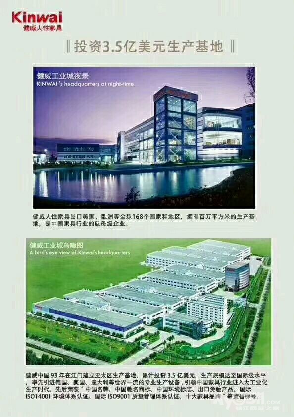 广州江门健威国际品牌家具,畅销海内外,欧洲,美国,内地,三大厂房,全部采用进口木料油漆五金件,现入住镇江亿都