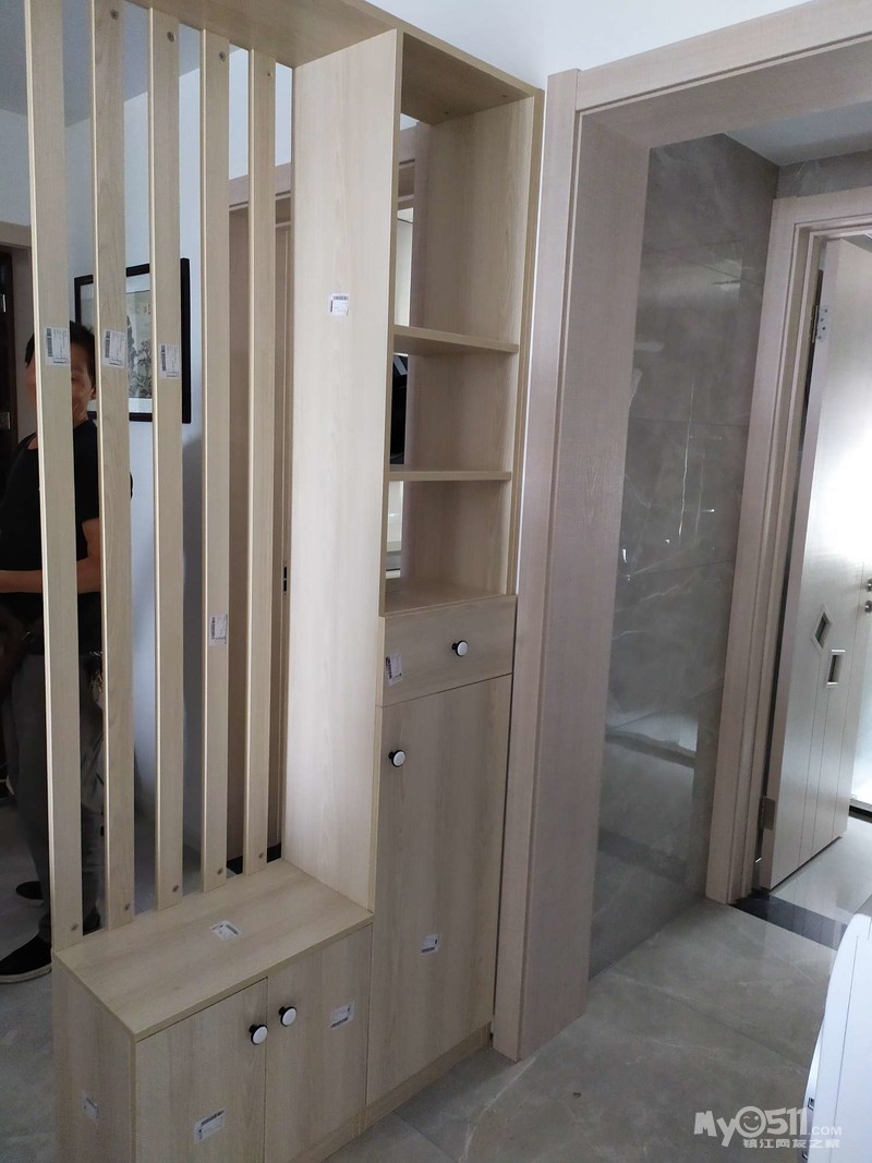柜子采用实木颗粒板和实木多层板,E1的国家标准,市面上正规品牌柜体材料都是一样的。
