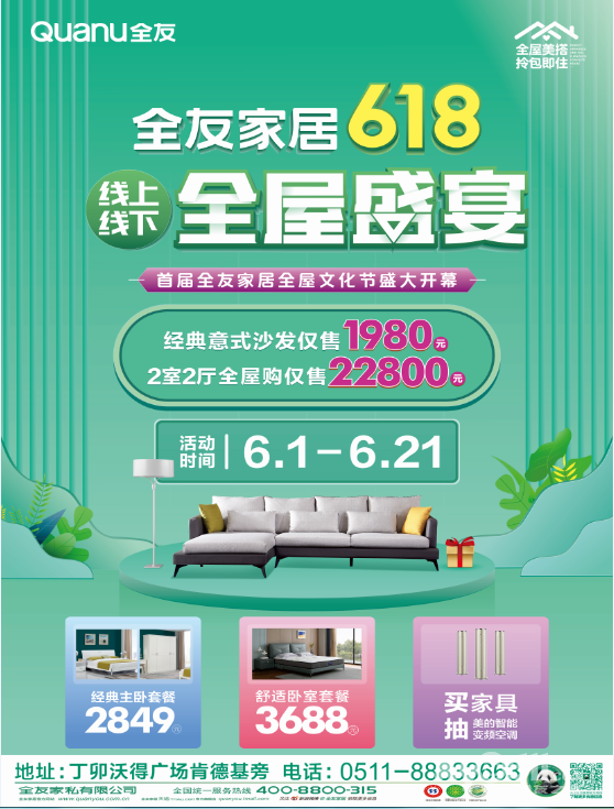 全友家居5000平旗舰店618线上线下全屋盛宴,低价惠全城!