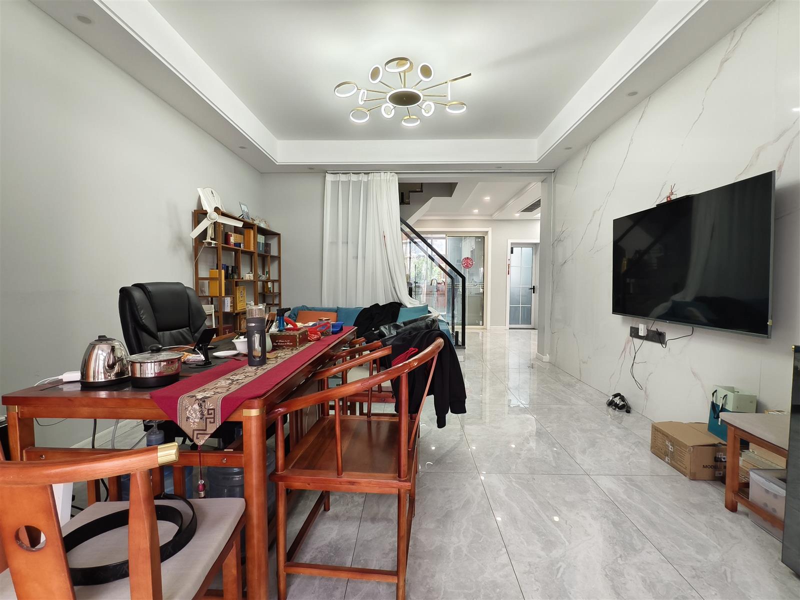 CF014广场旁边户大院子豪装下叠别墅毛坯价出 红木家具