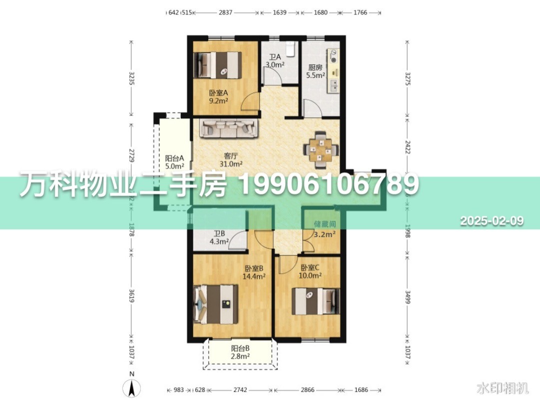 [二手房] 南徐 ax 85W120平 边户 大三房双卫 全新未住 有户型图 三室半二厅
