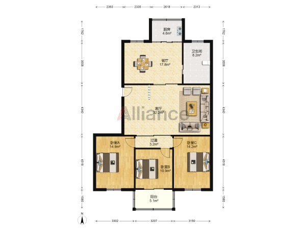 华都名城荣锦苑 8/17层 137平米 三房双卫 清爽装修