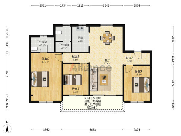 此房四开间朝南 厨房卫生间朝北南北通透 边户全明 阳光从早到晚都很好 包含车位和储藏室