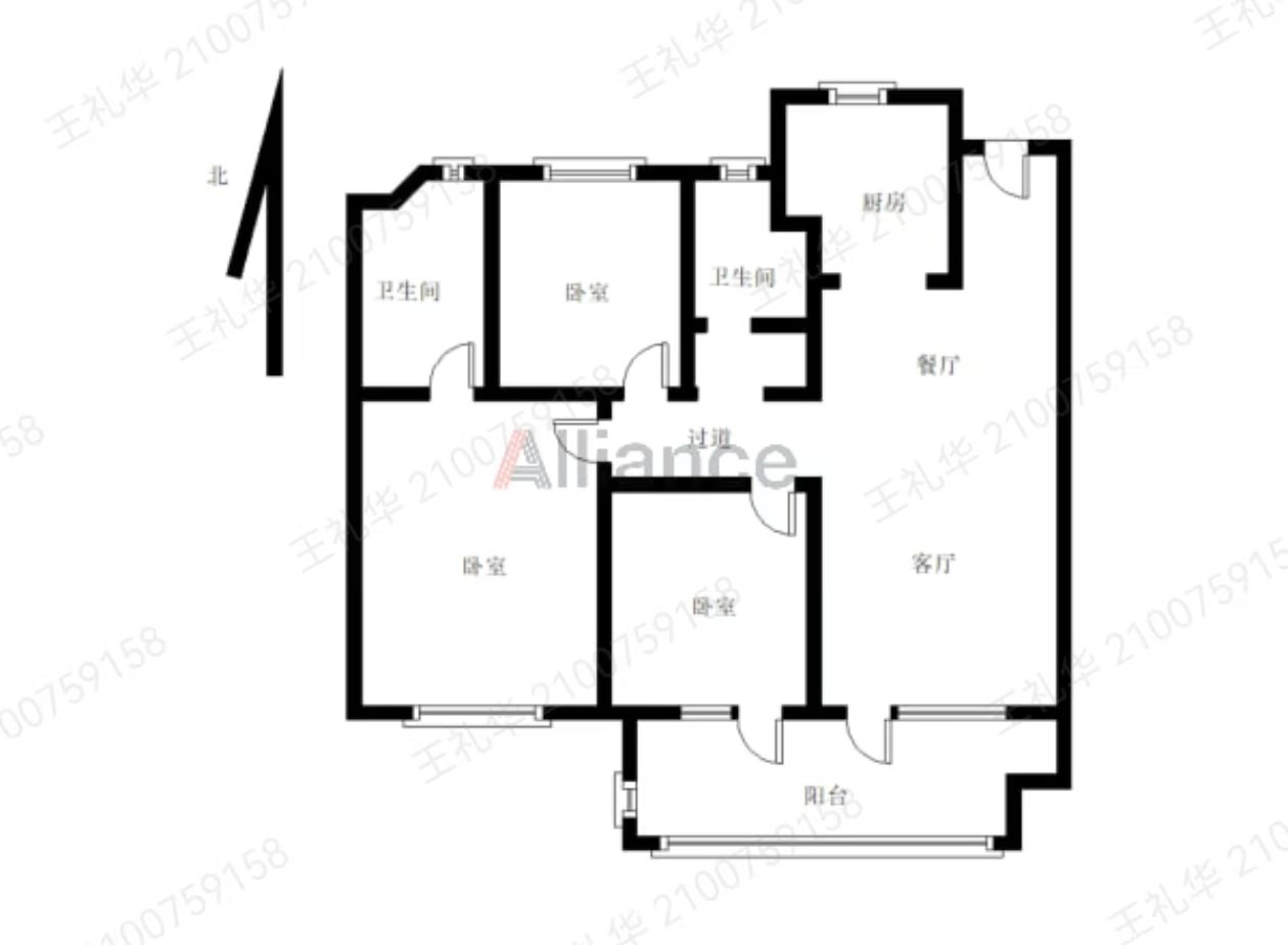 Q福润苑小高层105平6楼三房双卫双阳台户型好位置安静