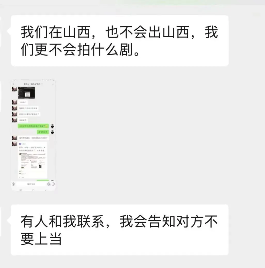 杨晓勋称,“尽管搜索山艺影视显示的是我,但我是山西的公司,并非在陕西。我公司全称为山西山艺影视文化传媒有限公司,主要业务是艺考培训学校,从未涉足任何影视剧拍摄。” 他反复强调,网友提及的剧组与他的公司毫无关系,“我们在山西,也不会离开山西,更不会拍摄任何剧集。”