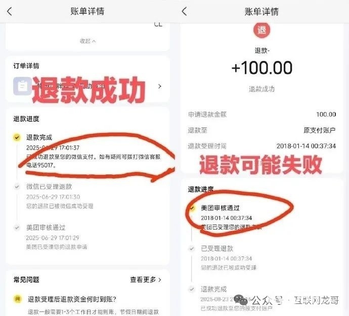 大家赶紧检查一下自己的美团退款,有没有真正到账?