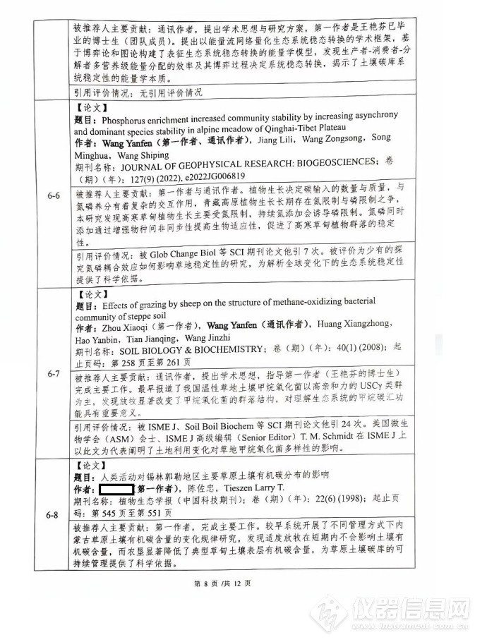 (1)提出了草地土壤碳库的系统稳定性理论,揭示了土壤碳库的形成与稳定性维持机制