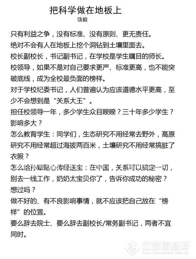 饶毅教授称生态环境监测领域出了一个“地板院士”