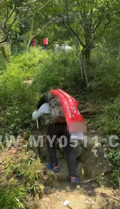 近日一位湖南用户发视频称自己背负近40公斤重的饮品爬武功山,并沿途售卖。图/受访者提供