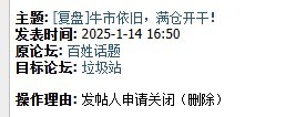 上个帖1月14号喊大家抄底以来,我就一直没走,后面因为有人在评论区发股票代码,就请吧主关了。
