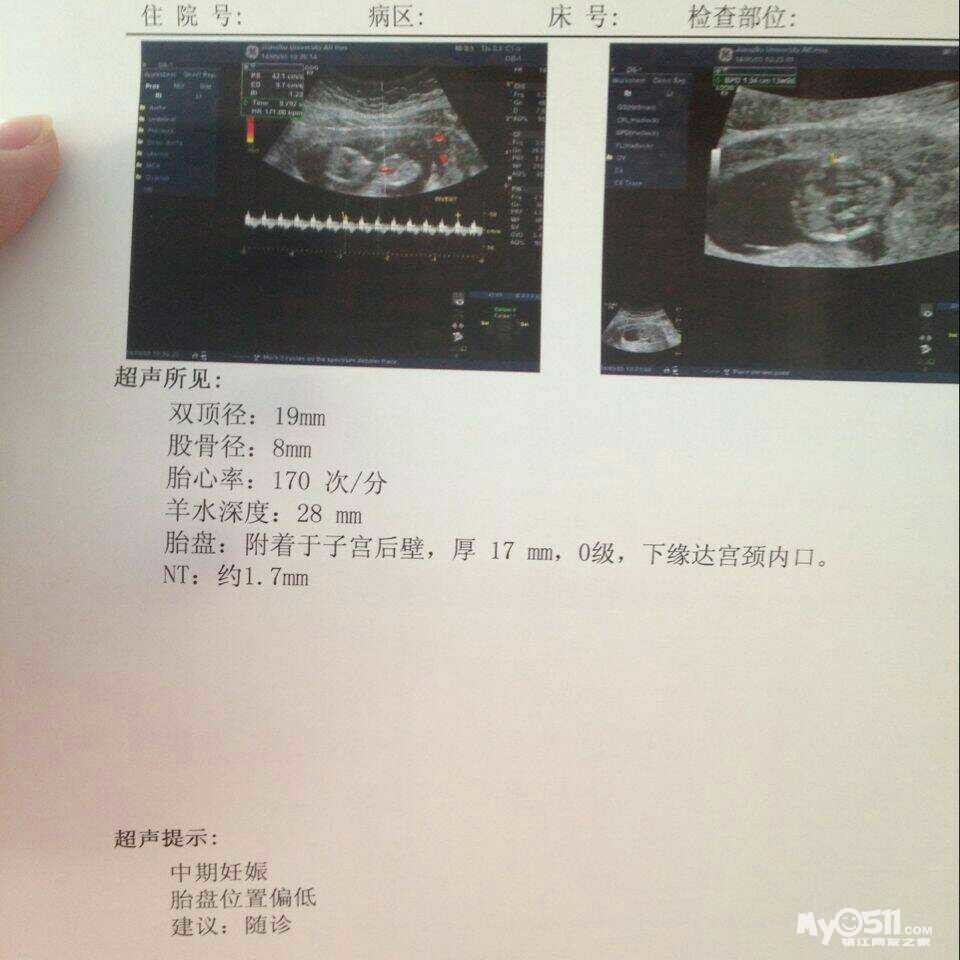 本来是想选择靠家近的瑞康医院,可家里人觉得刚开的医院总有点不放心,所以还是选择了江滨,等明年生的时候在看情况,NT完美,小朋友起初不配合把脸侧在一边,医生阿姨按了半天肚子