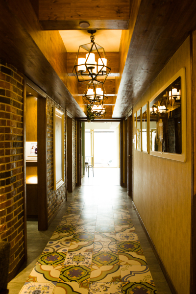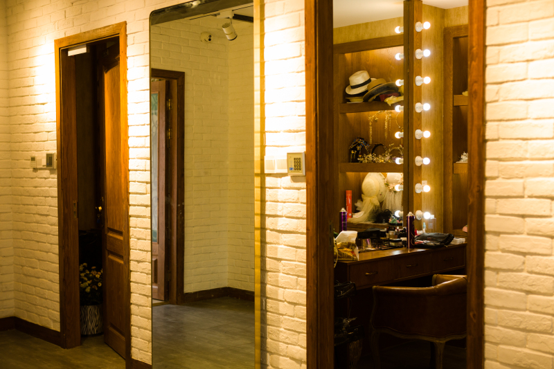 再往里面走就是一个个独立的化妆间和选片间,独立的房间给人一种私密感,更加有专属的感觉~沿着过道走到尽头便是内景棚~内景的风格也是有不少!