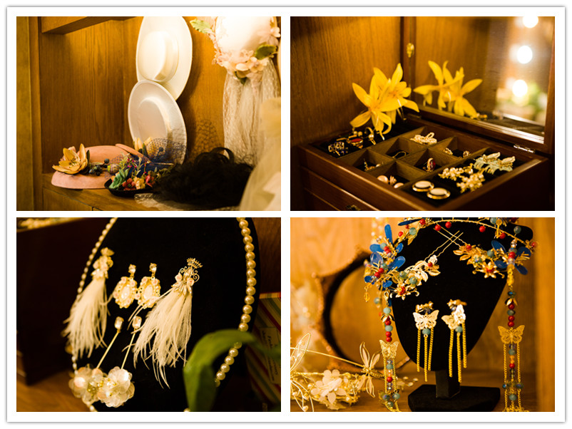 化妆间里也是放满了各式各样的精美饰品,风格和款式也是很多,给客人有了更多的选择~