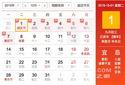 国庆节: 10 月 1 日(星期二)