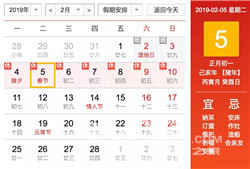 春节: 2 月 5 日(周二)