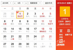 劳动节: 5 月 1 日(星期三)