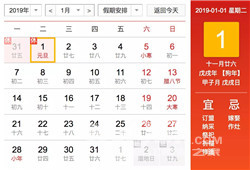 元旦: 1 月 1 日(周二)