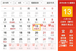 中秋节: 9 月 13 日(周五)