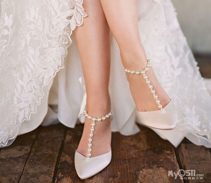 大家都知道珍珠跟婚纱是绝配,所以这双镶满珍珠的鞋用来当婚鞋再适合不过,特别是搭配缎面婚纱,一定超级艳丽!