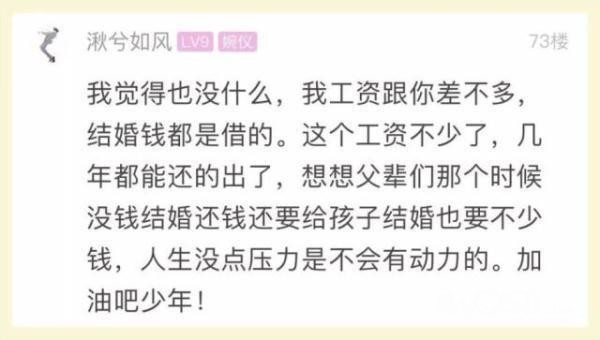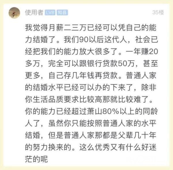 发帖的小伙子说,他月薪2-3万仍然没有勇气结婚,很羡慕那些同龄人……