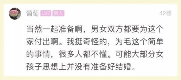 还有一部分网友认为,结婚是两家人的事,需要双方共同付出。