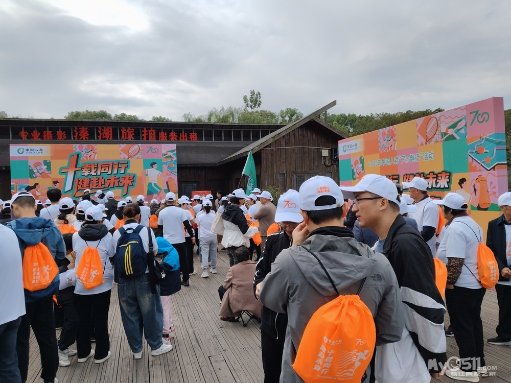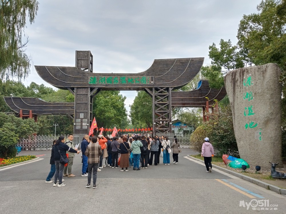 吃完早茶出发溱湖湿地公园,一路高架转高架,道路状况是真的好,城市快速路不错。到达景区,看到好多旅行团,还有健步走活动。