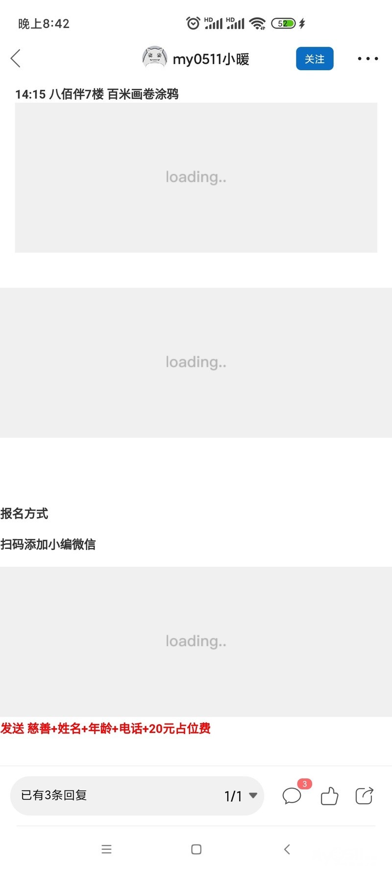 发送 慈善+姓名+年龄+电话+20元占位费