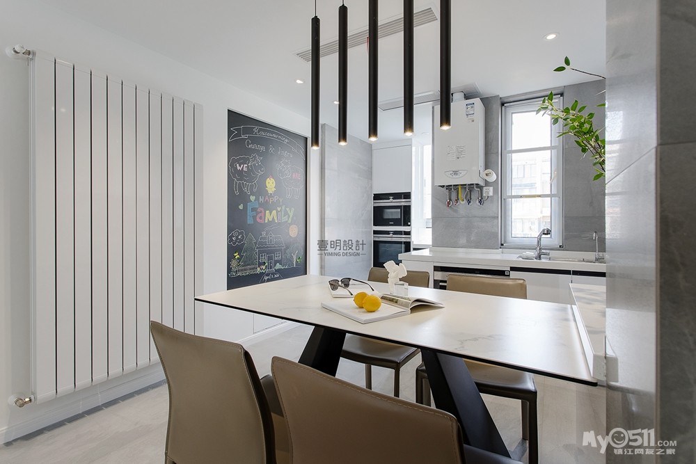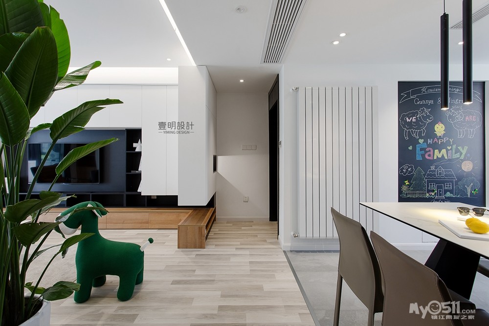 多层洋房都会有一些柱子的小边角,正好利用凹凸做了一面黑板墙,增加生活气息。