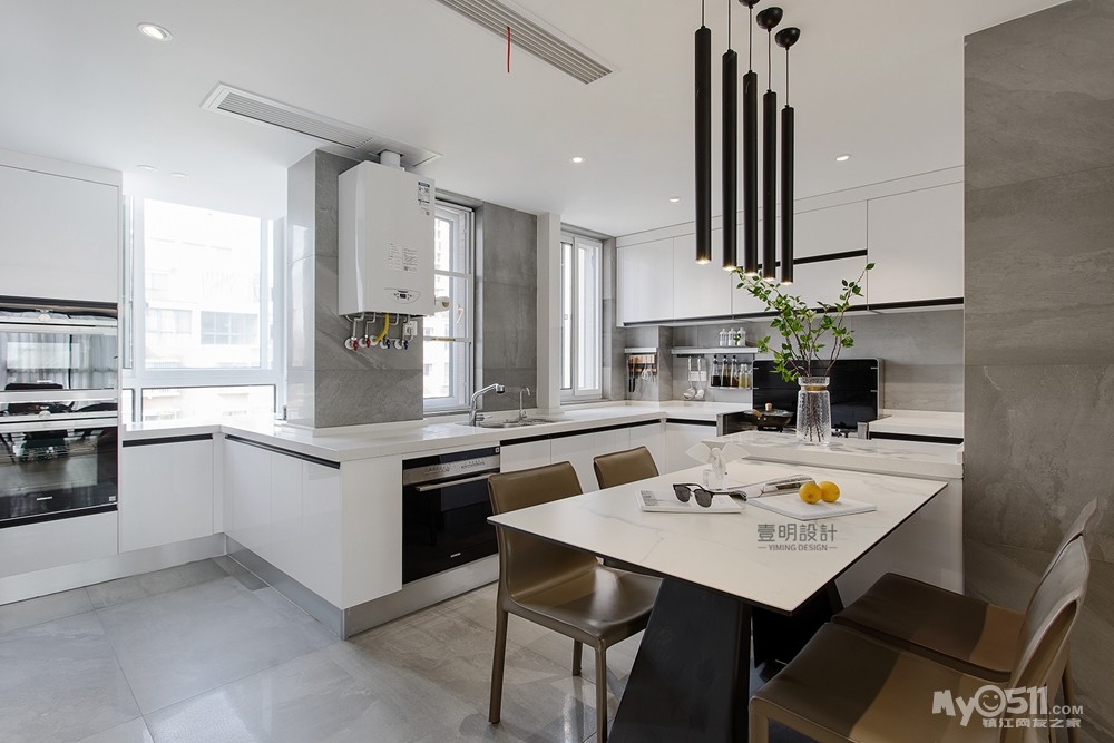 朝北阳台变成了厨房的衍生感,嵌入烤箱蒸箱,满足厨房的更多需求。