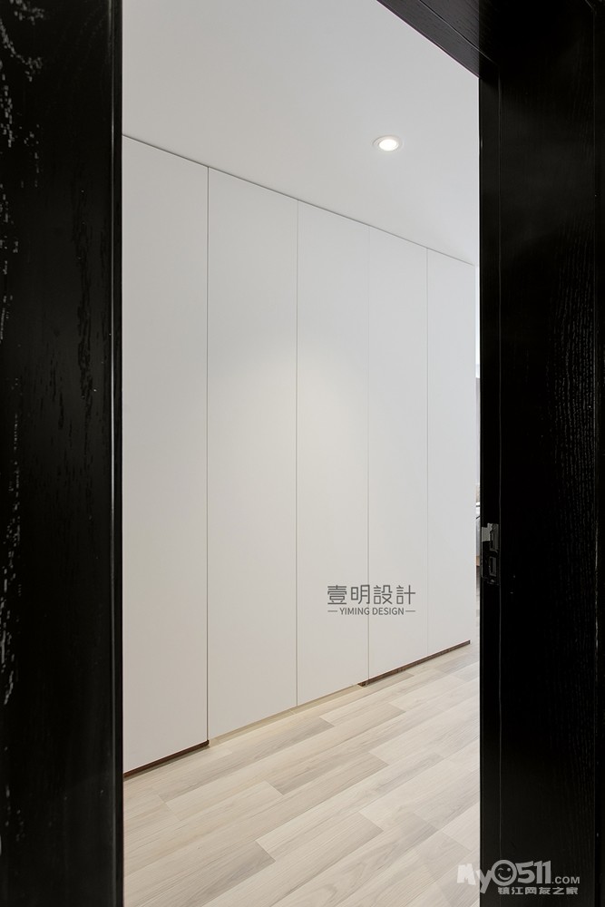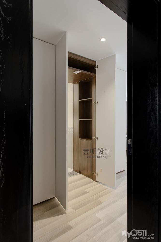 衣柜L形状转角,做了隐藏门,把主卫去隐藏起来,收纳进去。