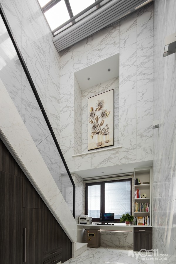 整面墙都采用爵士白大理石,给人简约大气之感,功能性强,