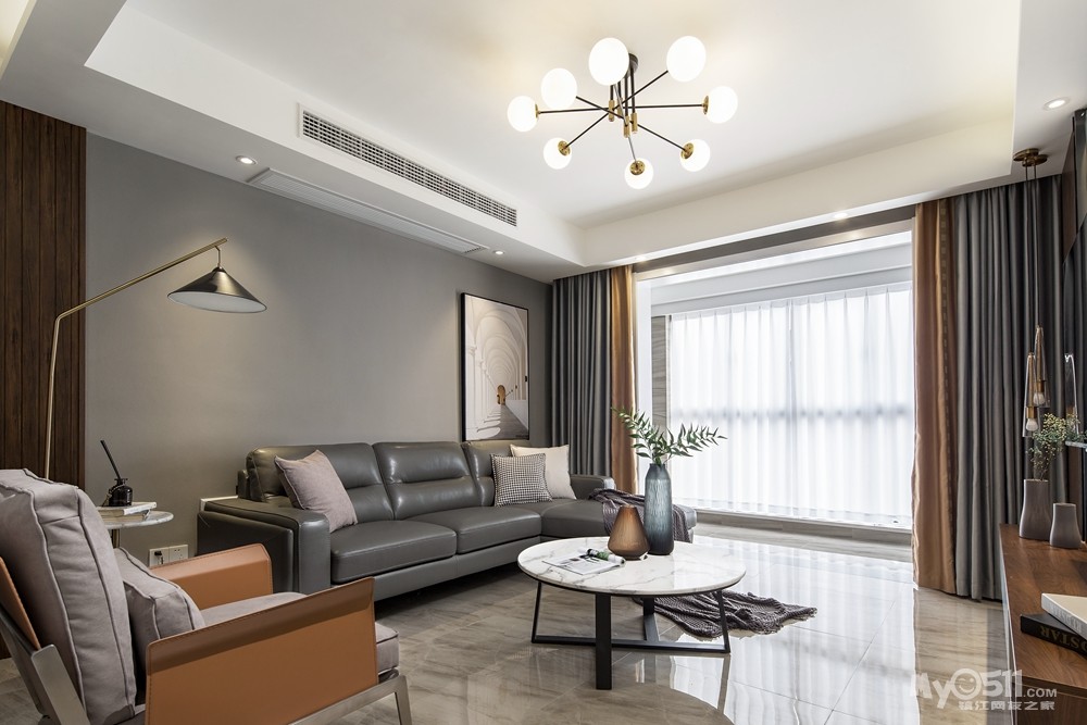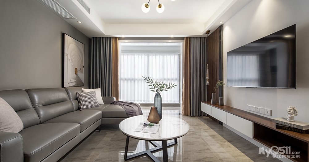 客厅设计主要方便活动为主,在保证收纳的前提下,尽量不要太繁复压抑。