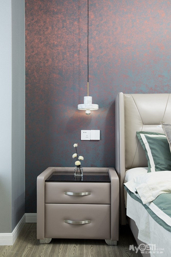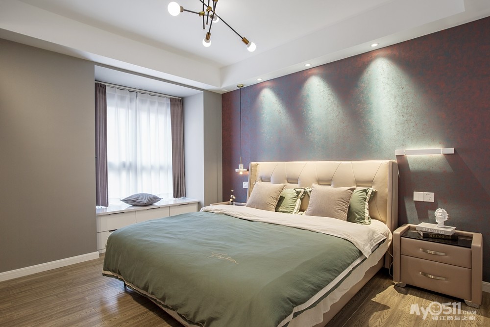 用移门作为卧室的软隔断,增加功能的灵活性和多变性、采光度。