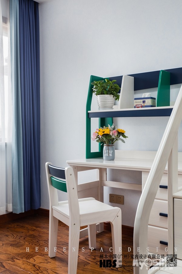 业主的孩子还小,还是个童真爱幻想的年纪,所以儿童房整体色调选择了天空蓝,