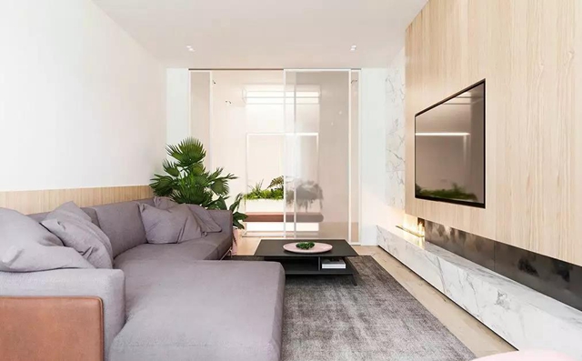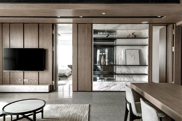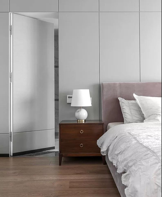 木饰面在隐形门中运用最多,因为材质本身的多样性,可营造出各种温馨自然的家居环境。