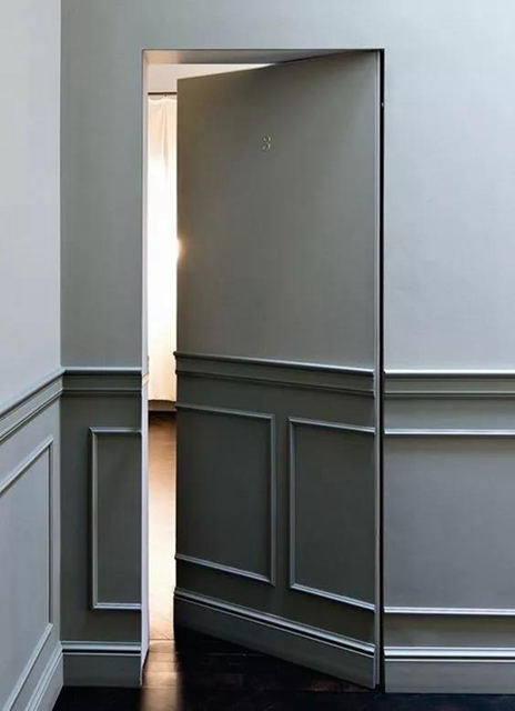 隐形门的外观往往不设把手,不用门框,更没有标志性的锁孔,把门隐藏起来,让人看不出是个门。