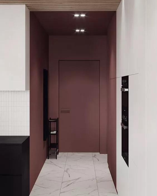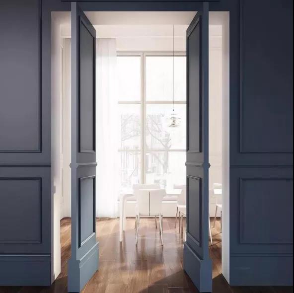 门的表面封石膏板,同墙体一起刷墙漆,让门在整体色彩中“隐形”,出彩的颜色也能成为墙面装饰的亮点。