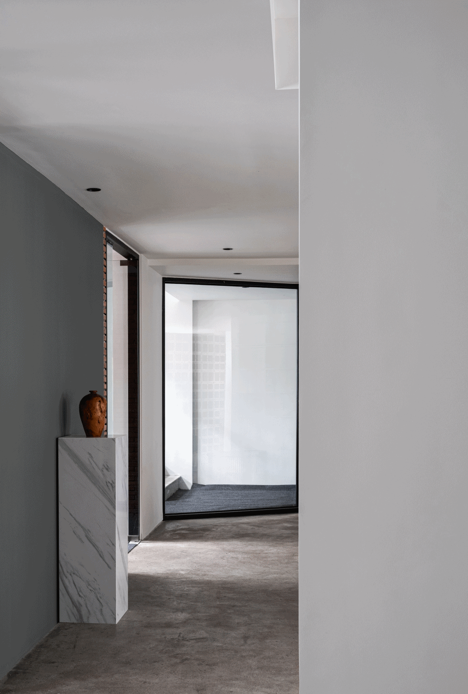 适度打磨的清水混凝土与极其细腻的意大利涂料。看似对立,实则性格互补“相谈甚欢”。