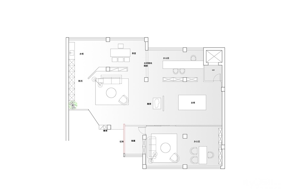这个虽是被用作商业的空间,我们却采取了遁世的美学构建。