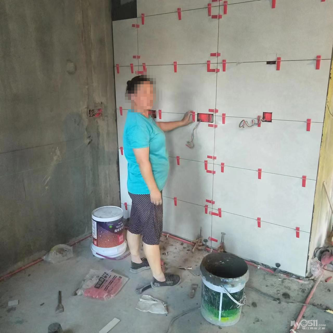 瓷砖整批到货了,就联系师傅上门安装,希望早早看到效果。