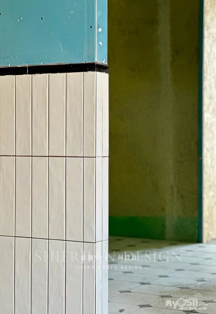 干区地面我看中了复古小花砖,最终在罗曼蒂克瓷砖找到了一款。