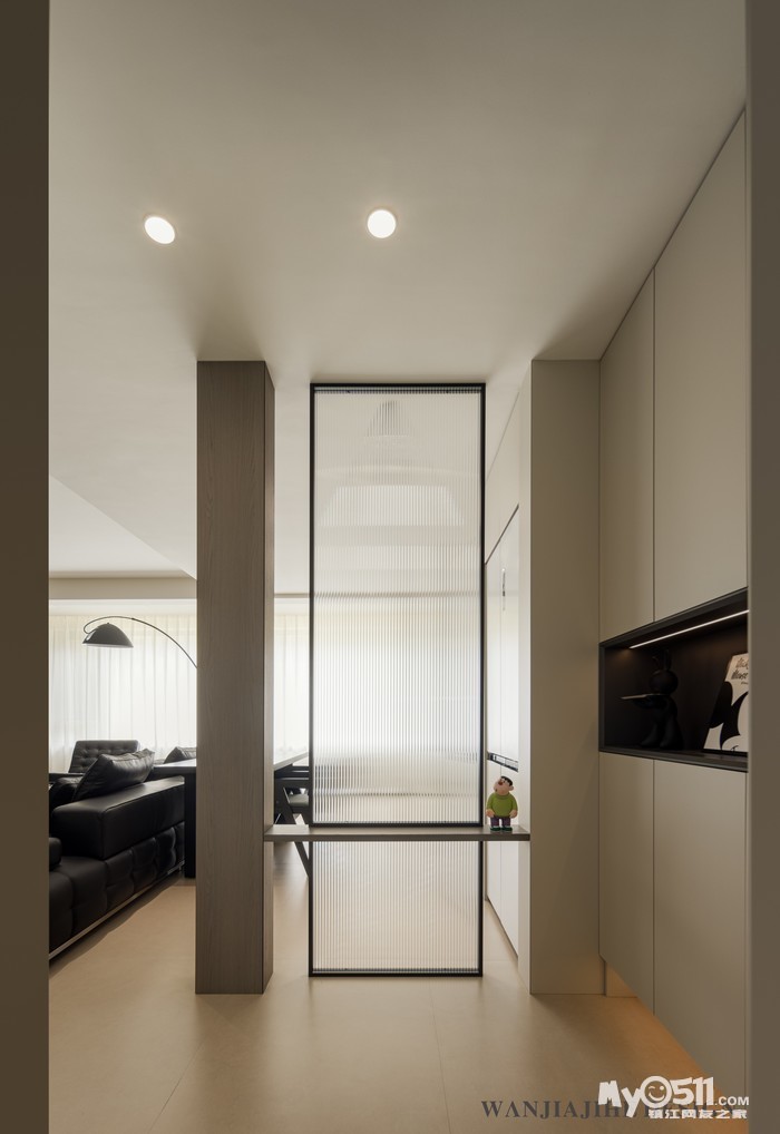 在入户位置用长条玻璃进行遮挡