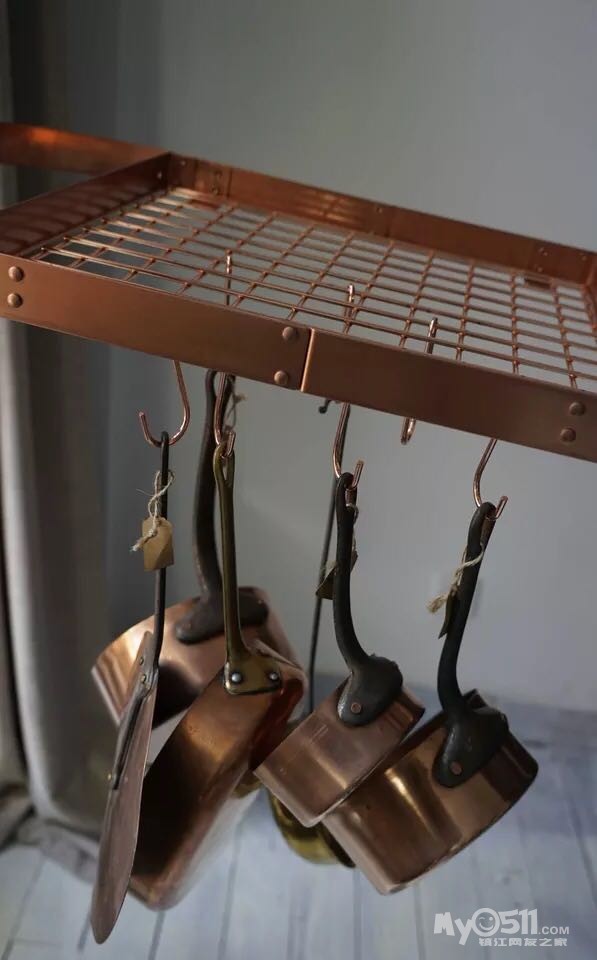 要来特别说一下我特别喜欢的这个吊在头顶的挂钩,可以把家里凌乱的各类奶锅,平底锅吊起来,有一种美式乡村的感觉。
