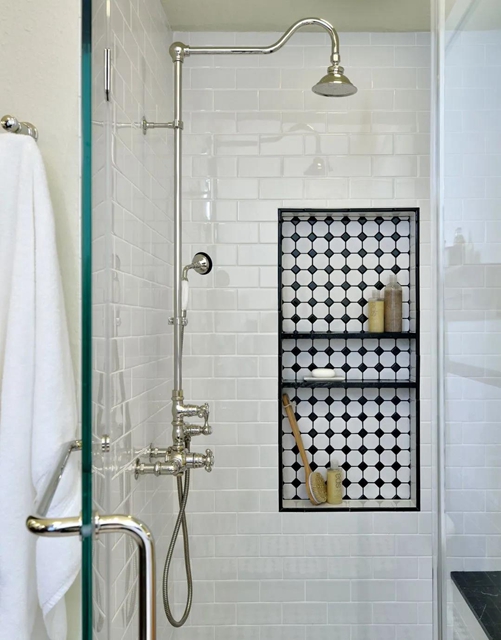 嵌入式的壁龛设计,不仅好看还实用,提供除了置物架之外的另一种思路,提高空间利用率。