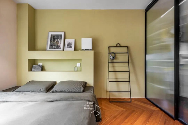 床头想要摆点东西,搁板会担心有掉落的风险,壁龛可以完美兼容床头柜的功能,闹钟、眼镜不怕没地方放啦。