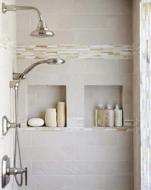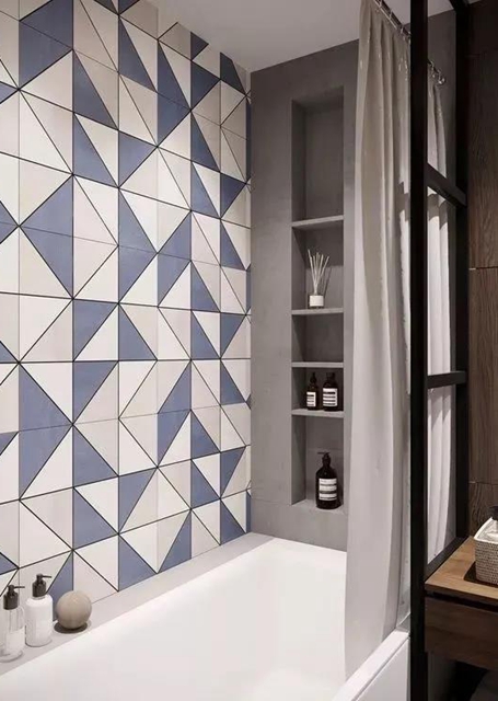 洗发水沐浴露等物品放在洗浴的地方经常受潮,瓷砖贴的壁龛比各种收纳工具都要实用,也方便清理。