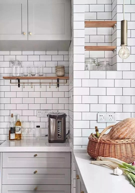在背景墙、餐边柜、书架,还是洗漱台、橱柜、洗手间…...都能看到它的身影,更带有收纳、展示、装饰墙壁的功能。