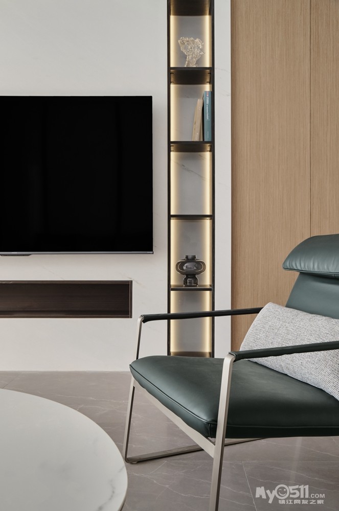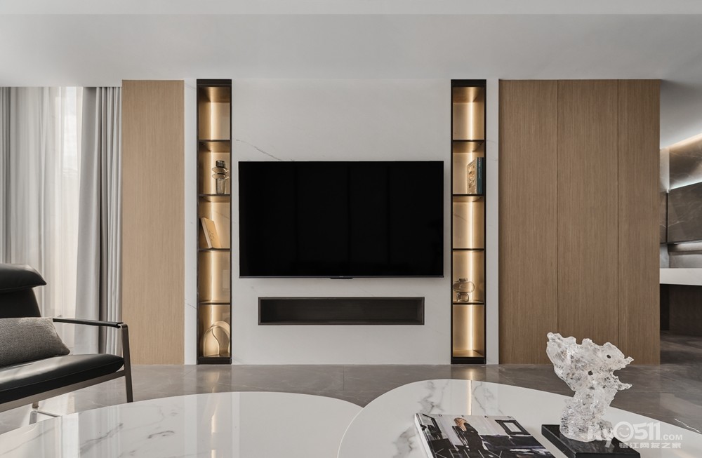 主题电视墙面设计出两列细长的装饰架