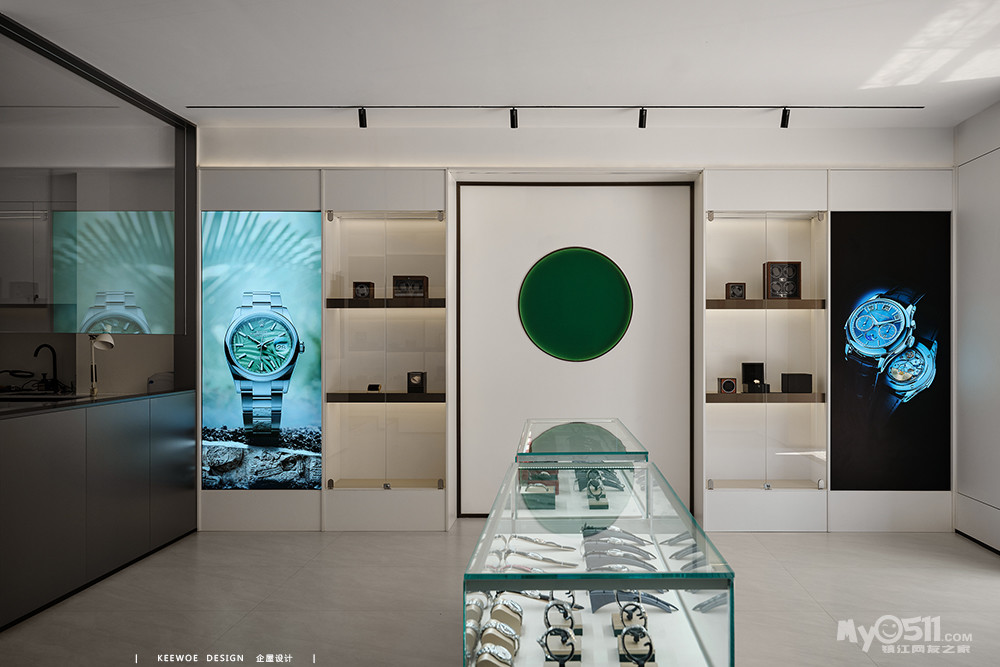 在本案中注入了更多关于品质表达方式的思考,通过对顾客动线的诠释,把艺术与细腻融汇在一起。墨绿色,高级而质感,同时也是名表劳力士的标志性颜色之一。