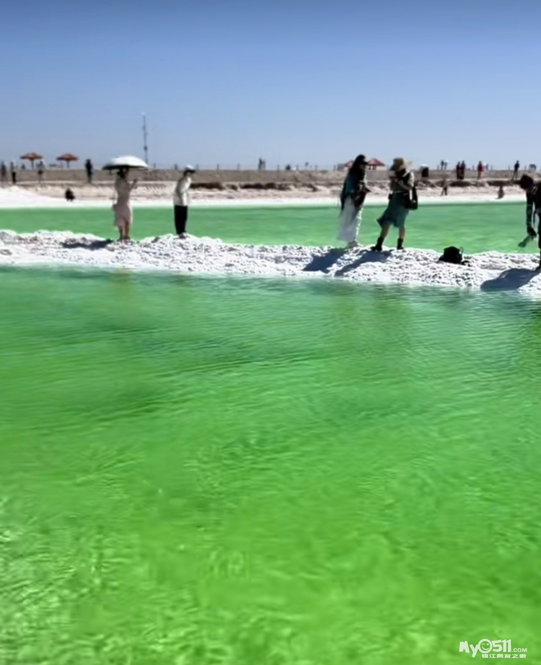 “青甘大环线”之翡翠湖。所谓的翡翠湖,就是盐湖,我们这次在青海游览了四处盐湖。大柴旦翡翠湖,茫崖翡翠湖,察尔汗盐湖,茶卡盐湖。基本上都是景交车送达翡翠湖边最后一站,然后往回头,或者乘小交通,当然也可以步行,不过地方太大了,如果步行大概一天都玩不完,所以一般都是乘车往返,中途停下来玩,中途随便你乘哪一部都可以,只要有票。这里温度不算高,但光照却很强,因为盐湖晶莹剔透,都会反光。网上说如果天气不好,盐湖看起来就如水坑,只要阳光好,盐湖就美丽异常,所幸我们去的时候都是大晴天。